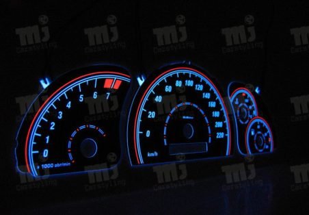 Met deze indiglo tellerplaten veranderd u uw standaard cockpit in een schitterende nieuwe sportieve cockpit!! Dankzij de modernste technieken worden de plasma tellerplaten perfect en egaal belicht, zonder vlekken of onregelmatige belichting.