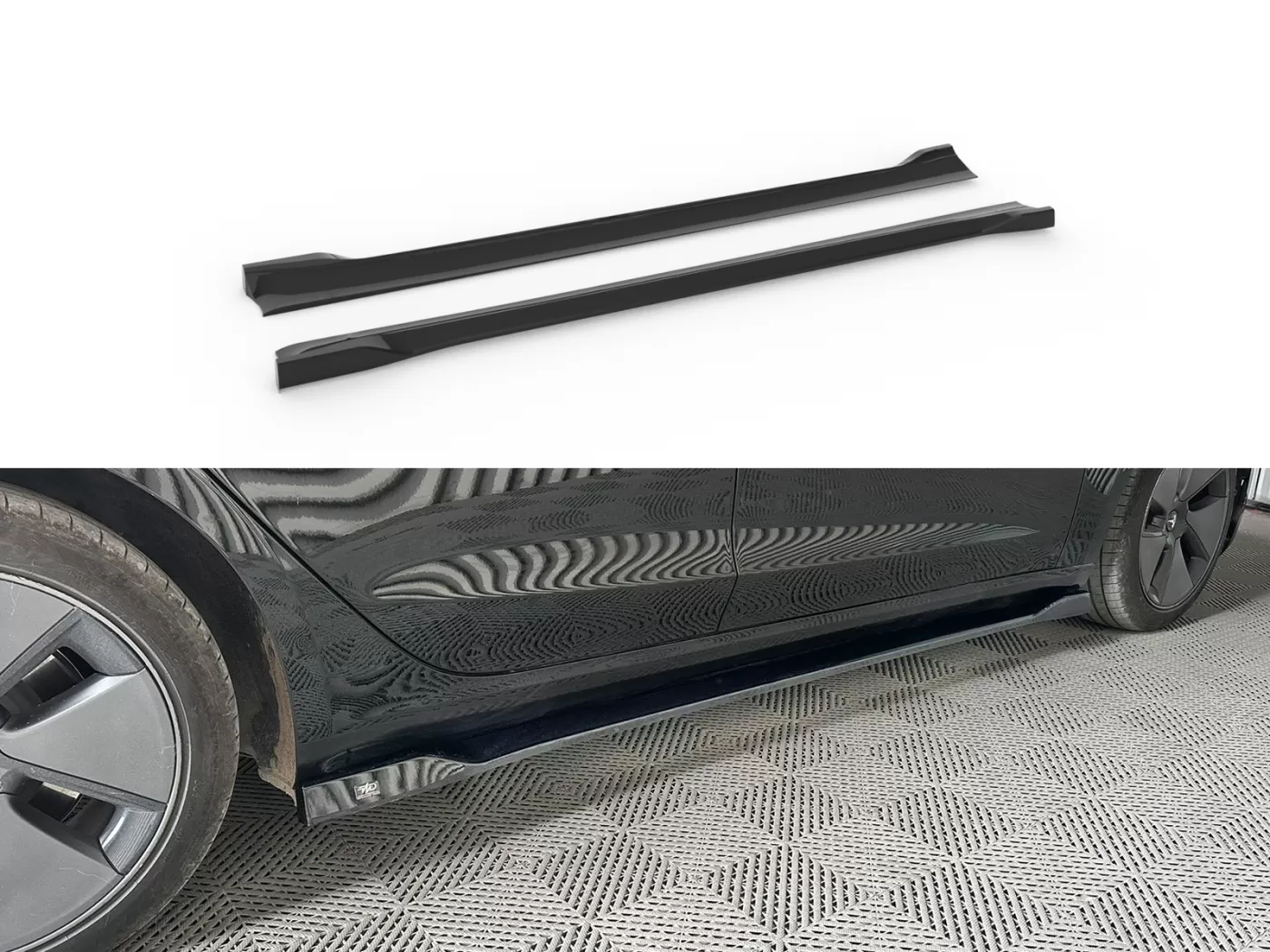 Sideskirts extensions voor Tesla Model 3 Mk1 zijn vervaardigd uit hoogwaardig ABS-kunststof in de nieuwste technologie van de thermovormmachine met eenvoudige en uitstekende montage. Het ABS-kunststofmateriaal dat we gebruiken voor de productie van producten wordt geleverd in glanzend zwart met een antikrasoppervlak en UV-bescherming. Het product heeft een beschermfolie die moet worden afgepeld voordat het wordt gemonteerd.