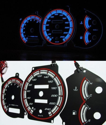 Met deze indiglo tellerplaten veranderd u uw standaard cockpit in een schitterende nieuwe sportieve cockpit!! Dankzij de modernste technieken worden de plasma tellerplaten perfect en egaal belicht, zonder vlekken of onregelmatige belichting.